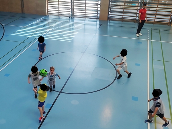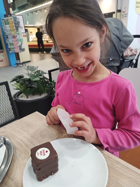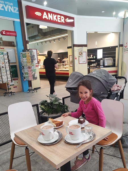 The two of us walked to the nearby shopping mall to have cake and hot chocolate. We ordered, got our food and sat down. We really enjoyed our rare mother-daughter time. After we were done, we went upstairs to find the restrooms, then we walked back to the bakery as I wanted to ask them something. After that, we left to walk back to the school. We got there a few minutes before the class ended and went upstairs where you can look inside the gym and watch them play. They were playing a game, and Emmy was quite offensive. I took a few pictures. When it was over, we went downstairs to the locker room to get Emmy and our stuff. Then we had to walk back to the same mall again to meet up with Randy and Sammy.