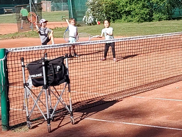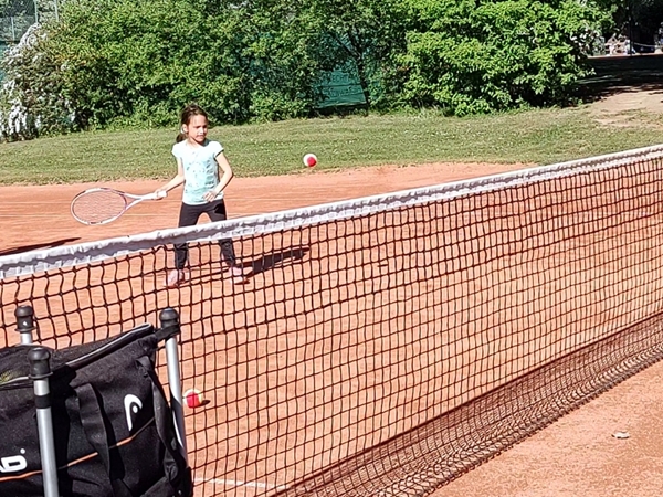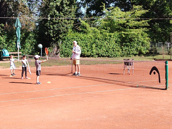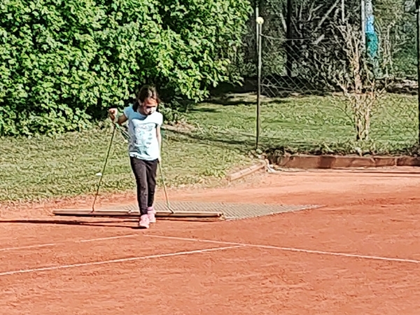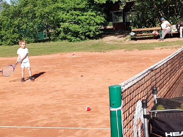 Emmy had an absolutely terrible day again when it comes to his behavior. He has these terrible anger fits that are not funny at all. They are very concerning. We rode the subway for three stops, then our scooters to the tennis club for our weekly tennis class. Tammy and Emmy had one other kid in their class and had the founder of the tennis school as their teacher again. We adults were right next to the kids, there were three of us, and we had the guy from the first lesson again as our actual teacher was in the hospital. We had a good time playing. The hour went by really fast. Emmy wanted to play more with me but we didn't have time for that. Instead he threw a few hoops in the small basketball area.