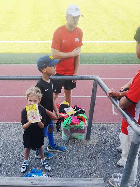 At 7:15 am the alarm went off this morning; that's still later than what it will be when school starts next week. Randy got up to make breakfast. Emmy was still asleep and got up a few minutes later, once Randy had put breakfast on the table. Surprisingly the other two were also waking up but did not want to eat anything yet. I helped Emmy get his backpack ready for the first day of his soccer camp and put sunscreen on him. At 8:15 am Randy left with him to take him there. Emmy had a great but tiring day at the camp, and he got one of the daily prizes because of his birthday.