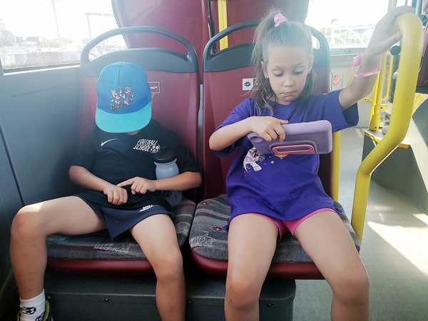 Walking to the bus stop, we saw Emmy and Daddy going there as well. It was perfect timing. We got on the 4:27 pm bus, then another bus and got to the playground 8 minutes before the cheaper rate started for the last two hours of the day. Sammy got to go in for free again. We put our stuff into a locker and went inside.