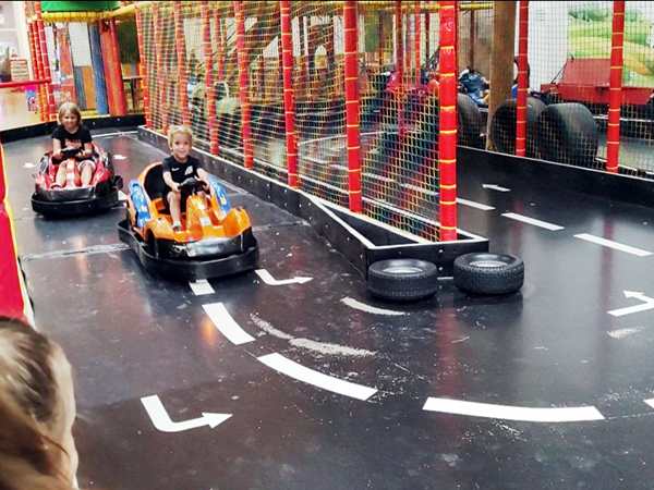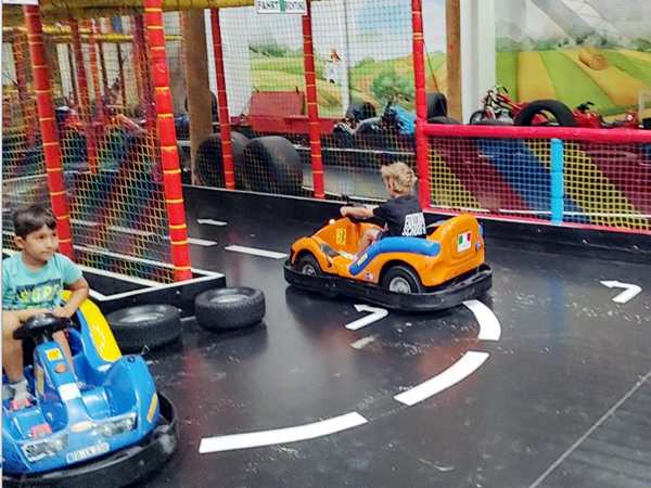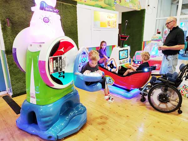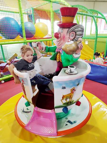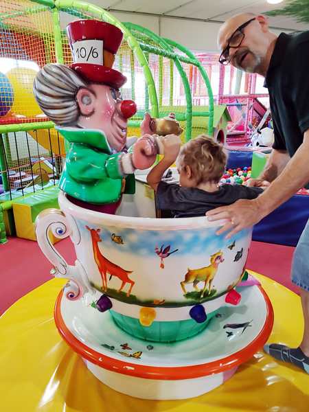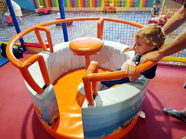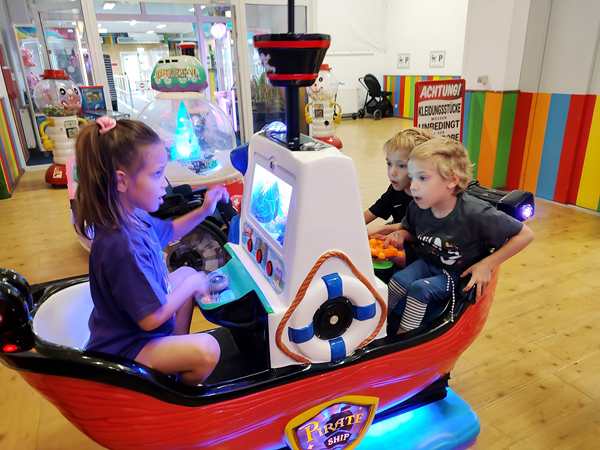 For the next nearly 2 hours the kids had lots of fun. Emmy started with the go-kart but Tammy didn't want to do it. You needed a special chip to do it, and we had two of them. Later Tammy wanted to use her chip for the climbing wall, but they closed it for the day right there and then. She was so upset that she was crying about it for quite some time.