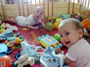 After we had put them to bed, Randy left to go grocery shopping. The boys were asleep, together in a bed. It was a stroke of genius to put Emmy in bed with his brother again. He's a light sleeper, so it didn't work well to be in the living room with us, with light and noise. Tammy, however, had had a good nap before dinner, so she wasn't quite ready to sleep yet. After a while she started fussing, though, and wanted to be picked up. I hardly ever get to finish my dinner at night! So I held her for a while, and she was getting a little tired, and in the end did not complain about putting her in bed. Right after, Randy returned from his shopping trip.