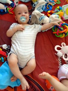 Right after we had fed the babies, Randy left to go pick up 20 moving boxes from someone for a great price. Of course, the babies ended up keeping me really busy the whole time he was gone. The boys cried much of that time. I fed all three, one after another, and then Randy came home. It wasn't long before it was time for their last meal of the day. And since it's Wednesday, their bath and weigh-in.