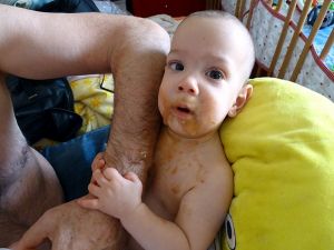Sammy gets cuter by the day, the more he smiles, and he's not just quieter, but also a lot more content than he used to be. It's not him that is screaming all the time any more. He just lets you know when he's hungry. I love this picture of him holding on to Daddy's arm while he's getting fed.