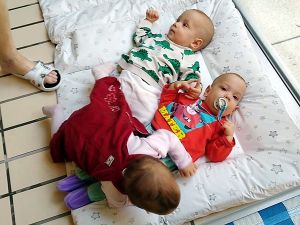 In the evening Sammy fell asleep right away, and Emmy was fine too. I was wondering about Tammy. She now throws a fit when you put her to bed, crying as hard as she possibly can, wanting to be picked up! It seems that she's getting into a habit of being rocked to sleep. When I rocked her last night, I had to think of their first 9 weeks of life, in the hospital, when there was no one to rock them when they cried, nobody who picked them up (at least at night when we were not there). No child should go through that, and I gladly held my daughter, letting her know I was there for her, when she needed me. It may be inconvenient, maybe some people think it's not good. So be it. Randy is so tired at night anyway that he needs a nap, so tonight he got to rock her and himself to sleep, and I then moved her from his chest to her bed.